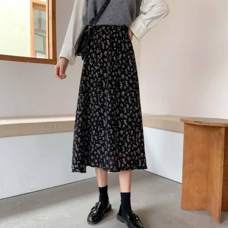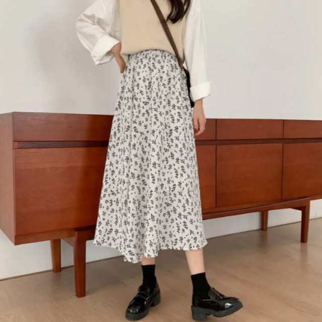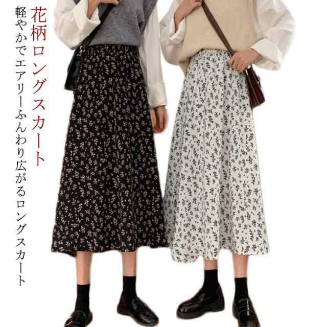 花柄ロングスカート フラワープリント レディースファッション 通販 ホワイト ブラック S M L XL 2XL 3XL