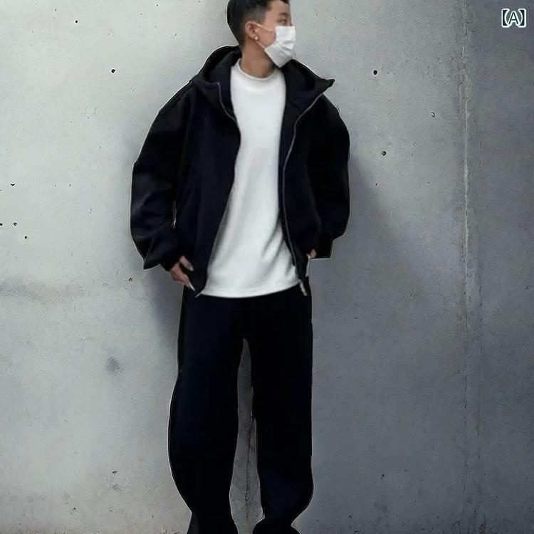 セットアップ メンズ 男性用 秋冬 厚 トップス スウェット トレーナー 早い者勝ち A:黒 B:灰 M L XL 2XL 3XL