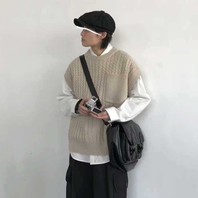 ニットベスト セーター 春 秋冬 ラウ メンズファッション 豊富な品揃え ベージュ グリーン M L XL 2XL
