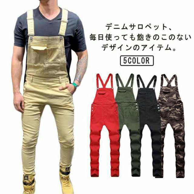 スキニー オールインワン サロペット オーバーオール 早い者勝ち ベージュ 迷彩 レッド カーキグリーン ブラック S M L XL 2XL 3XL