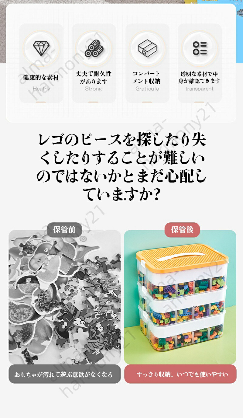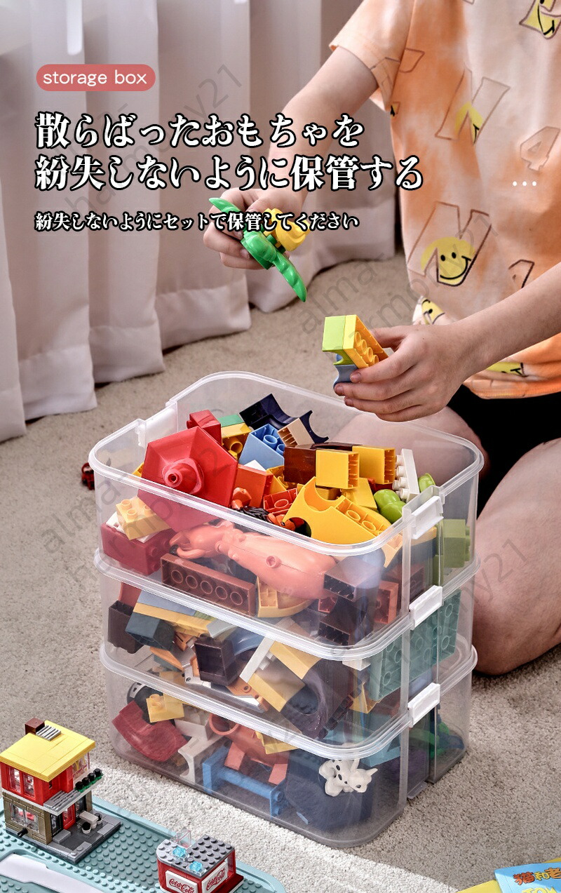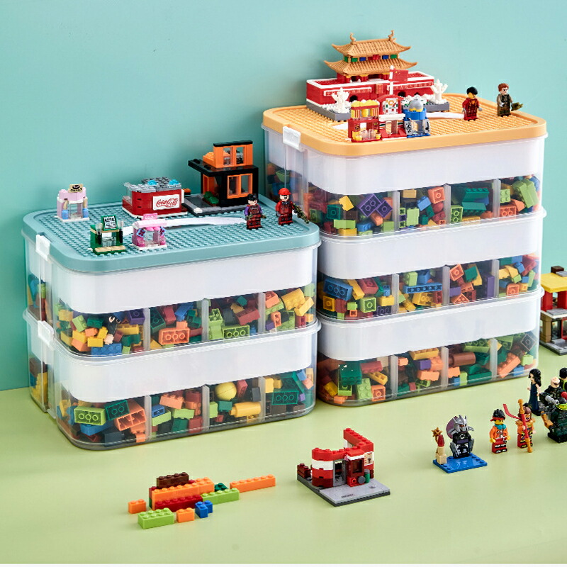 レゴブロック収納ボックス 大容量 おも 1段 2段 3段 ブルー イエロー