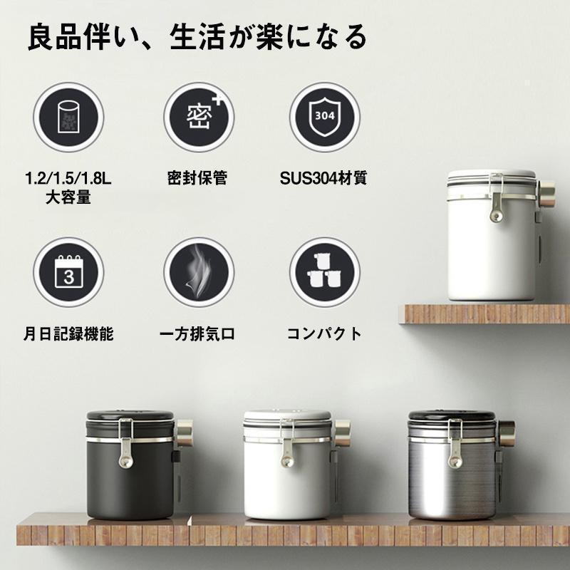 コーヒーキャニスター コーヒー豆 保存 ホワイト シルバー ブラック 1.2L 1.5L 1.8L