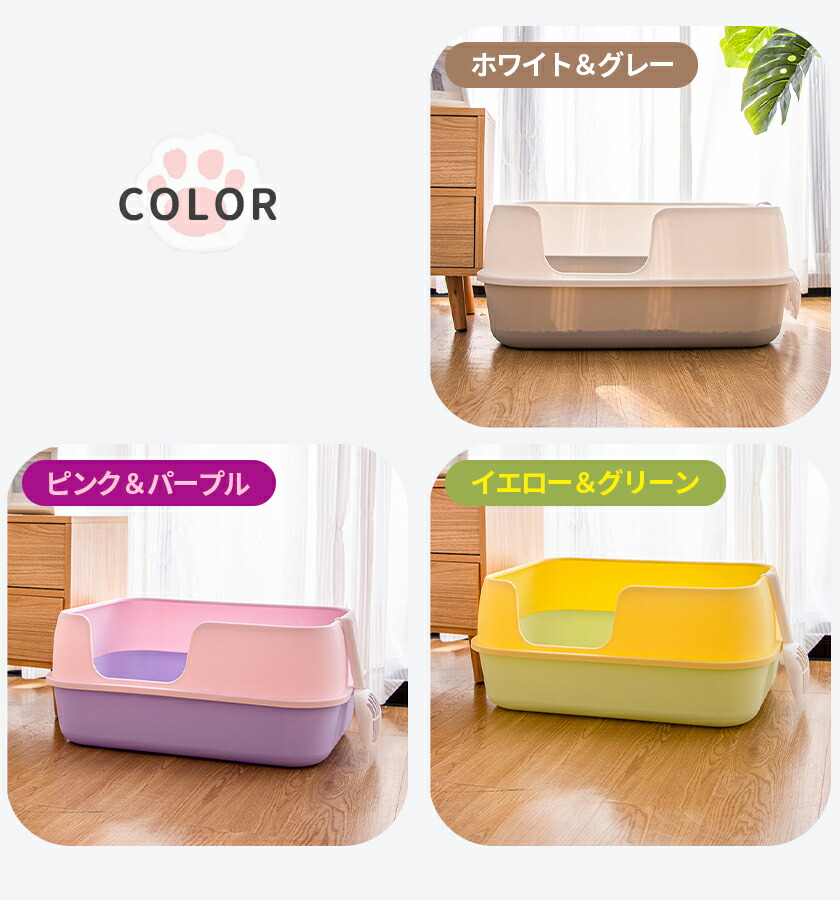 猫トイレ 大きめ 飛び散らない トイレ ペット ペットグッズ 早い者勝ち ホワイト&グレー イエロー&グリーン ピンク&パープル