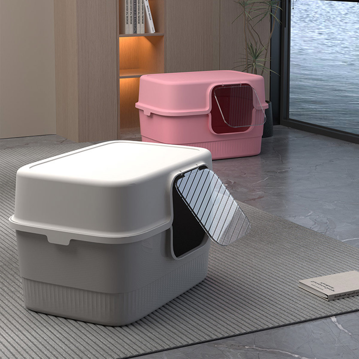 猫トイレ カバー 飛び散らない 大きめ 猫用品 トイレ用品 トレーナー トイレ容器 続々入荷中 グレー イエロー ピンク グリーン グレー(マット付き) イエロー(マット付き) ピンク(マット付き) グリーン(マット付き)