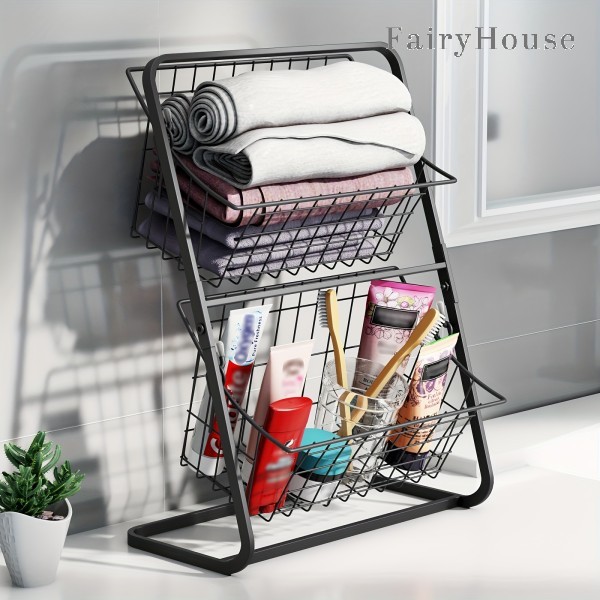2段メタル収納バスケット - 果物、野 キッチン用品 食器 調理器具 超目玉商品 ブラック ホワイト