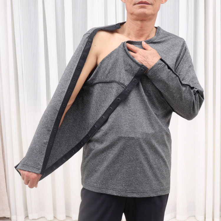 介護用品 メンズ 介護服 tシャツ シ ブラック半袖 グレー半袖 ブルー半袖 ブラック長袖 グレー長袖 ブルー長袖 M L XL 2XL