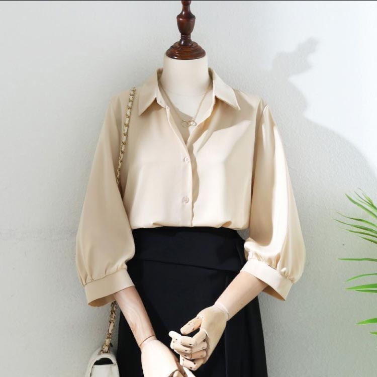 シャツ レディース ブラウス 7分袖 トップス シャツ ブラウス 続々登場 ホワイト イエロー ベージュ ブルー S M L XL 2XL 3XL