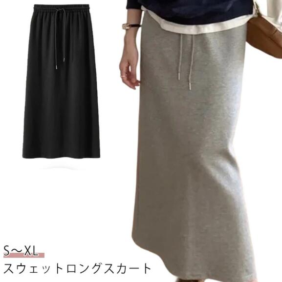可愛い スウェットスカート マキシ丈 ボトムス スカート 通販 グレー ブラック S M L XL