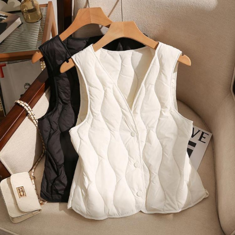 ノースリーブ 中綿 黒 保温 女性 中 トップス ベスト 早い者勝ち ホワイト ブラック S(40-47.5KG) M(48-55KG) L(55-62.5KG) XL(63-70KG) 2XL(70-77.5KG)