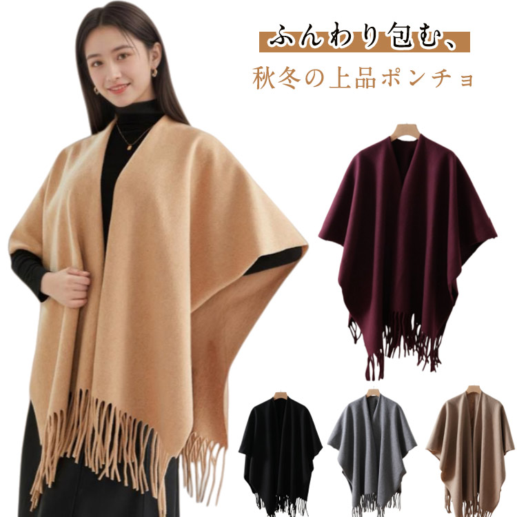 ポンチョ ケープ 大判ショール レディ バッグ 小物 ブランド雑貨 人気 ブラック キャメル ワインレッド カーキ グレー