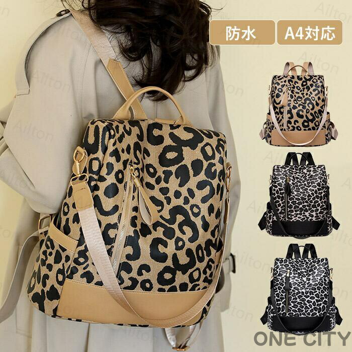 リュック ヒョウ柄 バックパック レディース 3ショルダーバッグ 防犯バッグ 大容量 撥水 4 リュックサック 通勤 通学 旅行