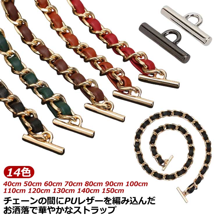 ショルダー チェーン ショルダーストラップ ショルダーベルト ショルダー バッグ チェーン のみ 単品 フェイクレザー 編み込み チェーンストラップ 付け替え 交換用ストラッ