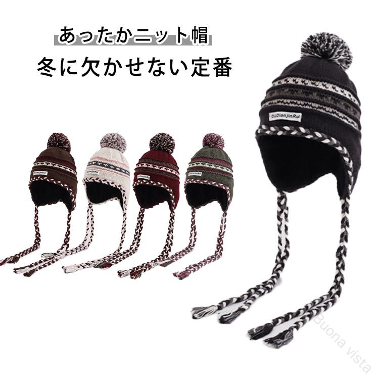 ニット帽 ニット 帽子 レディース キャップ 耳あて付きキャップ ポンポン ノルディック柄 防風 防寒 かわいい ニットキャップ 冬 シンプル 冬物 可愛い あったか 通勤 通学 ウィ 耳付きキャップ