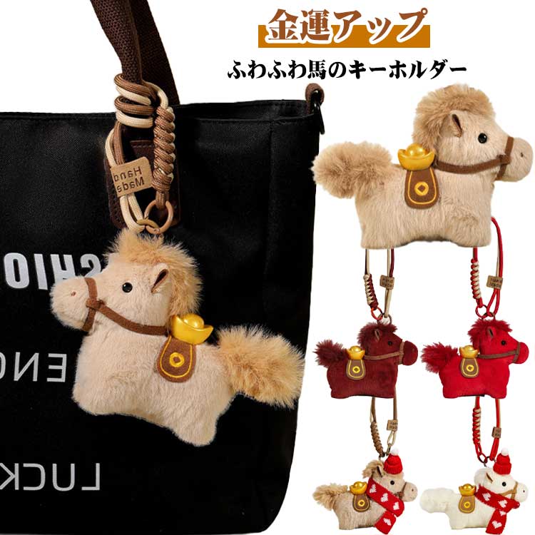 金運縁起 ふわふわ馬のキーホルダーで毎日をハッピーに!幸運を呼ぶ! 馬好き必見! リュックにぴったりのふわふわチャーム!