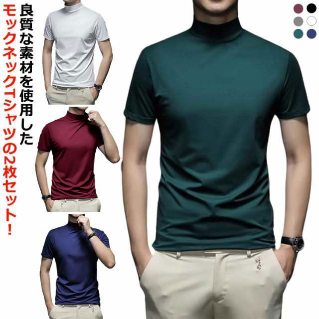 2枚セット ハイネック 半袖 メンズ Tシャツ メンズtシャツ モックネック ゴルフtシャツ ストレッチ 無地 モックネックシャツ ハイネックtシャツ カットソー スポーツウェア ラン トップス
