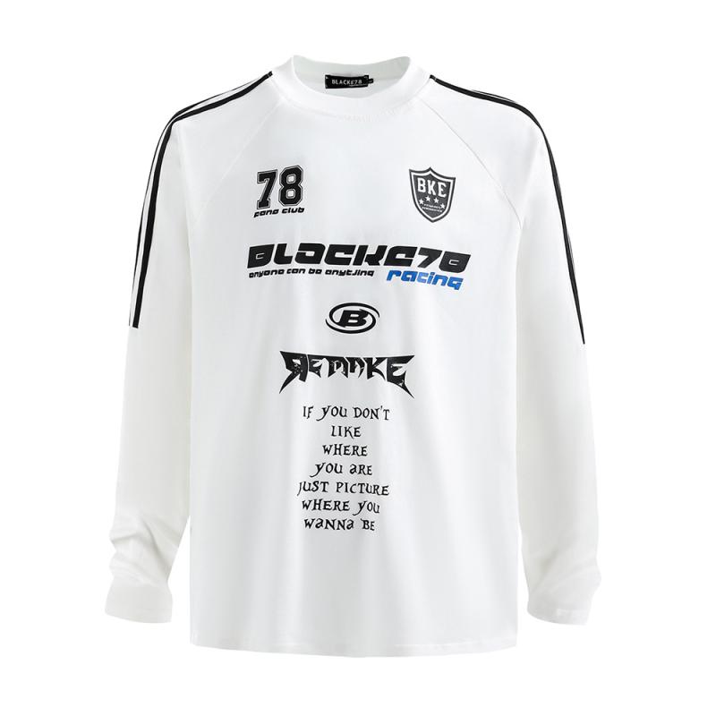 Tシャツ メンズ 男性用 春秋 長袖 アルファベットプリント クルーネック 綿 ゆったり ルーズフィット ストリートファッション カジュアル 普段使い トップス ホワイト ブラック 通気性