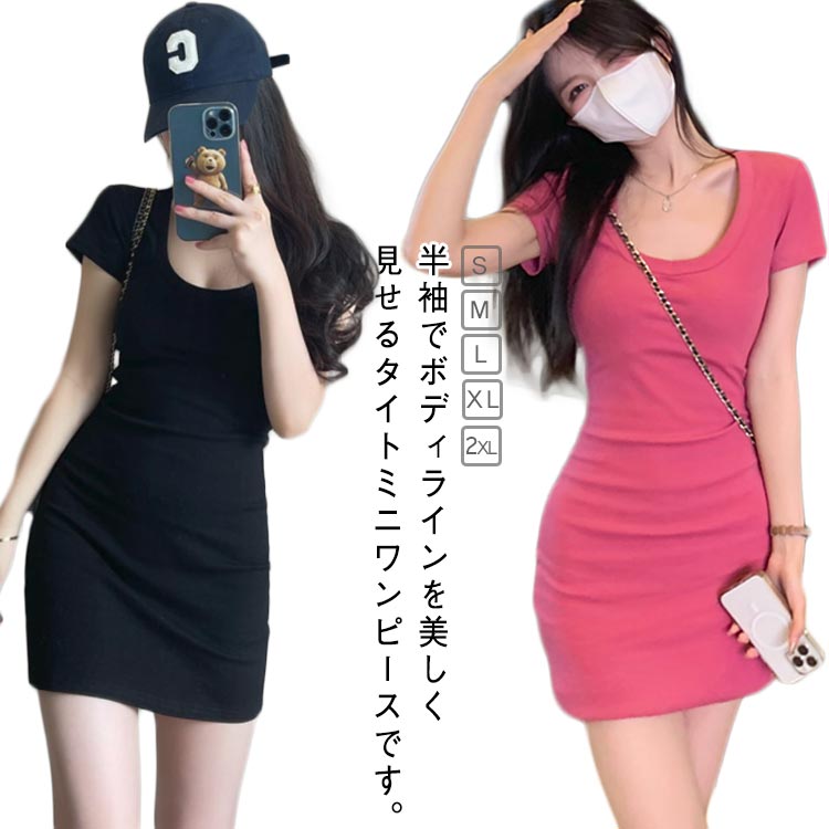 ワンピース レディース 春 夏 春夏 黒 Tシャツワンピ タイトワンピ ミニワンピース チュニック Uネック ひざ上 ショート丈 チュニックワンピ ミニ ONE シンプル カジュアル Tシ PIECE