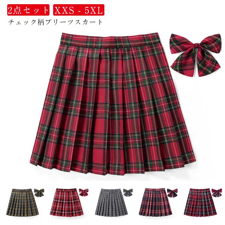 JK制服 蝶結び+スカート チェック柄プリーツスカート 学生制服スカート スカート 制服 冬 秋冬 2点セット スクール 女子高生 結婚式 お受験 全20タイプ オールシーズン 高校生 レディ 発表会