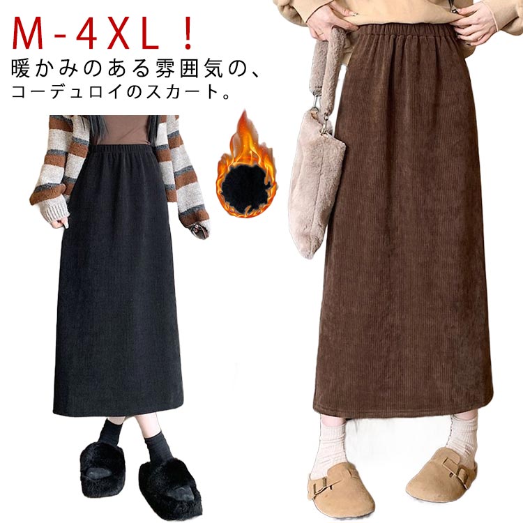 裏起毛 タイトスカート ロングスカート 秋冬 防寒 コーデュロイ スカート マキシスカート 暖かい 裏起毛スカート ウエストゴム カジュアル おしゃれ レディース オフィス 大人 きれいめ 通勤