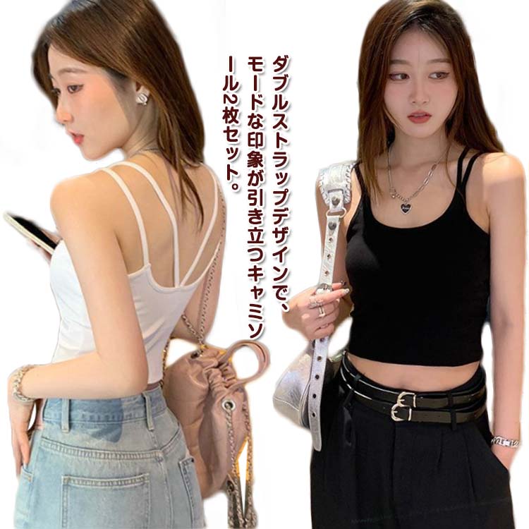 送料無料 2点セット キャミソール レディース 夏 カップ付き ダブルストラップ 美背キャミソール 見せキャミ ショート丈 おしゃれ シンプル