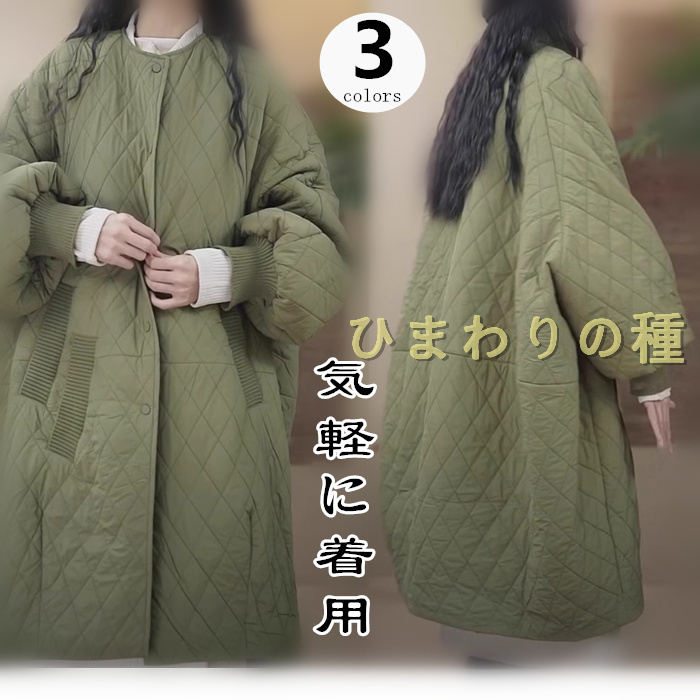キルティング ロングコート ロング丈アウター アウター ノーカラージャケット レディース 綿服 ダウンジャケット コートゆったりオーバーサイズ 中綿ジャケット