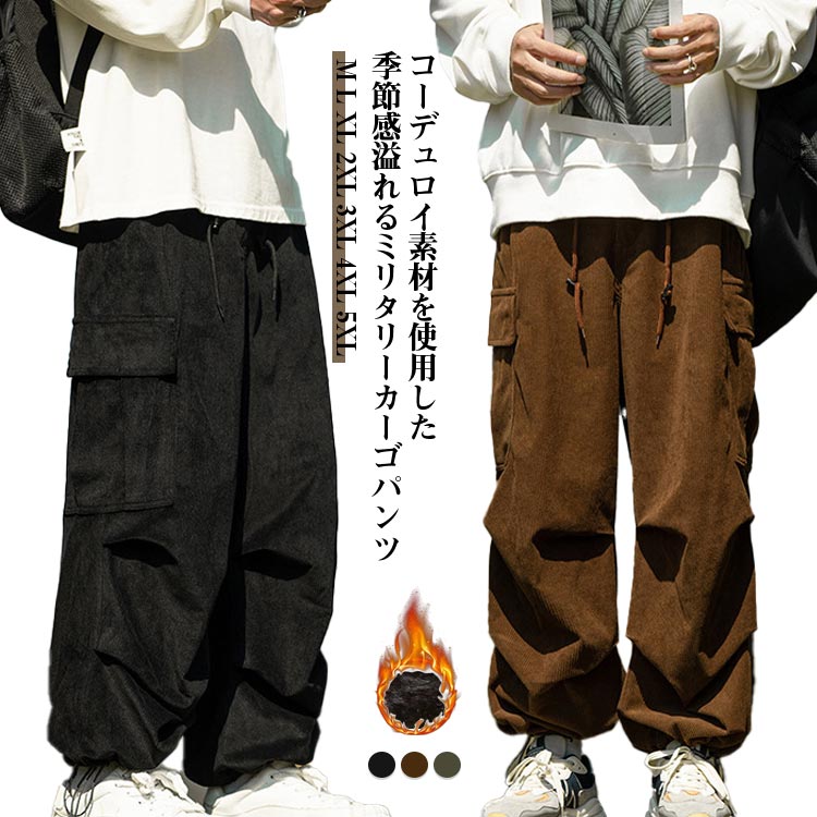 裏起毛 カーゴパンツ メンズ ストレートパンツ ワイド カーゴ 暖かい 秋冬 ミリタリー コーデュロイパンツ 防寒 保温 コーデュロイ 裏起毛パンツ カジュアルパンツ 厚手 ゆったり 暖パン