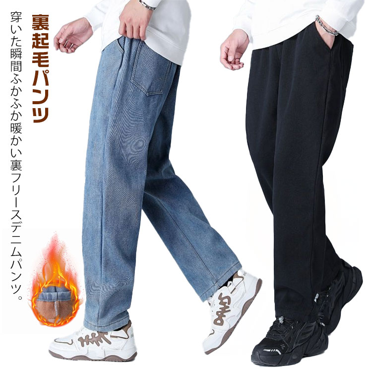 裏起毛 ワイドデニム デニムパンツ 暖か ジーンズ メンズ デニム