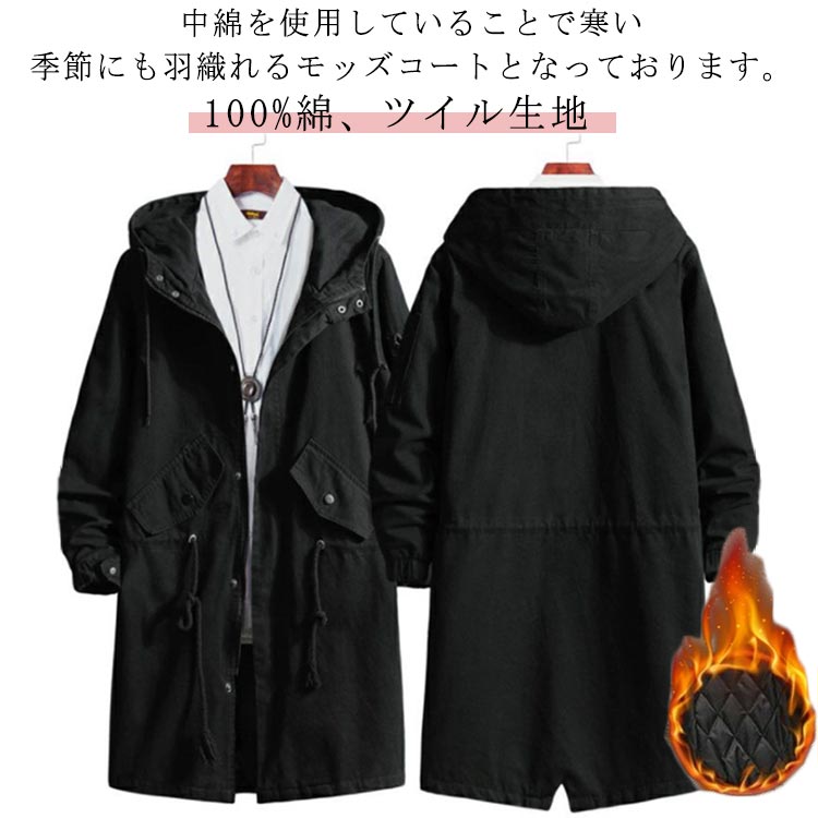 中綿 綿 ミリタリーコート コート メンズ 厚手 ツイル生地 暖かい ミドル丈 通勤 レディース 防寒 ミニマル 秋 冬 モッズコート アウター ゆったり 秋冬 保温 軽量 学生 通学 カ フード付き
