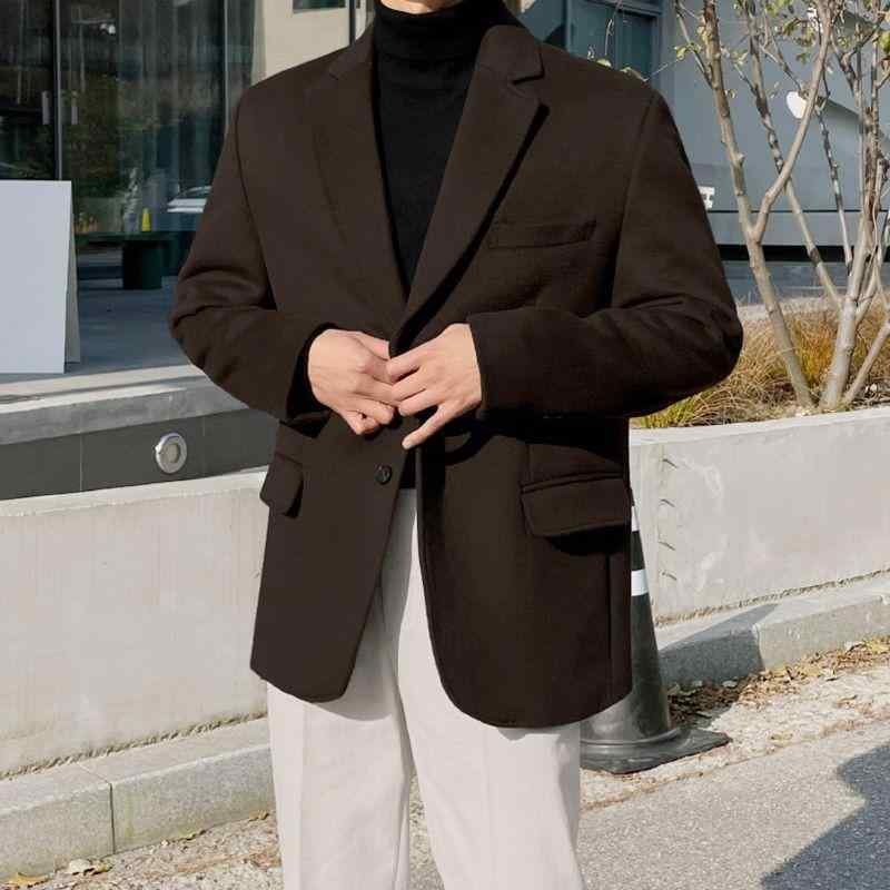 ジャケット メンズ 高級感 メルトン生地 ポリエステル カジュアル アウター 秋冬 保温 厚手 ゆったり ルーズフィット 韓国 男性用 ブレザー 上着 コーヒー グレー 普段使い