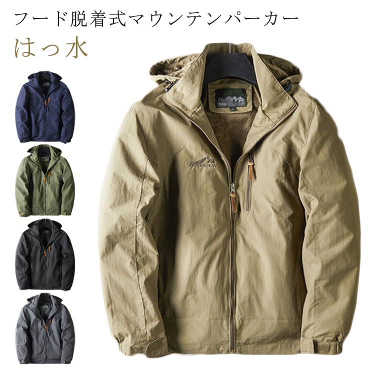 マウンテンパーカー メンズ フード付き 胸ポケット 撥水 ジャケット レディース フード 脱着可 防寒着 ブルゾン ジャンパー 暖かいマンパ 秋 秋服 冬 大きいサイズ アウトドアウエア ウイン 冬服