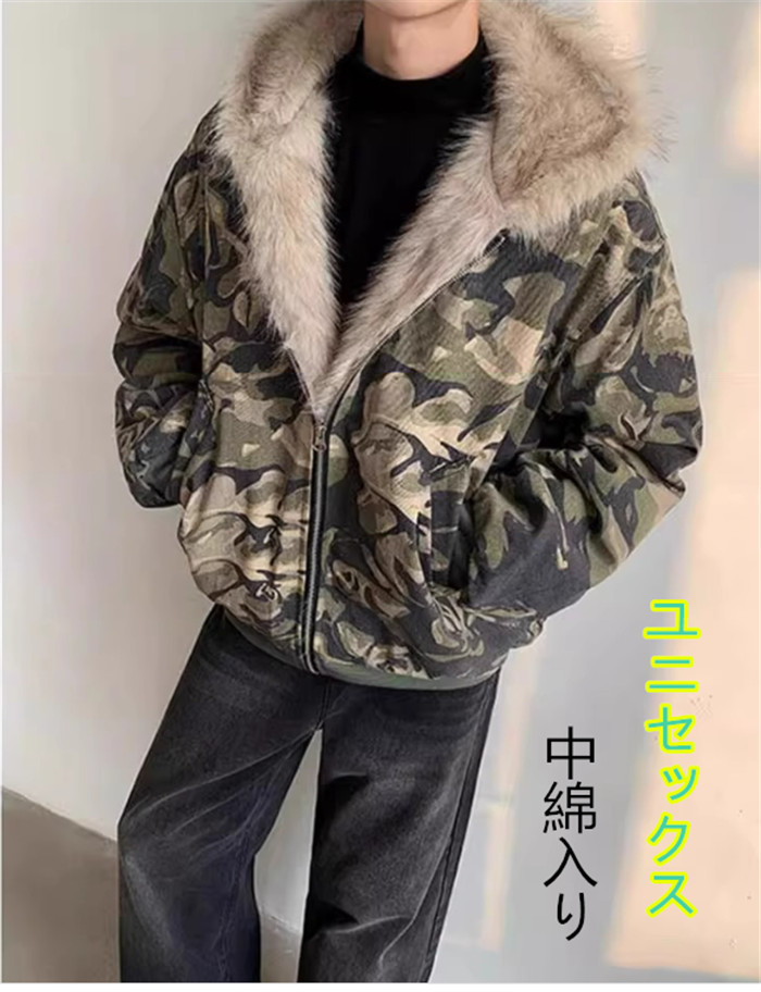 迷彩柄中綿入りファー ジャケット メンズ 冬コート ジャンパー ブルゾン ファーダウンジャケット アウター レディース綿防寒アウター 防寒ジャケット レデ 冬用ジャンバーファーダウンジャケット