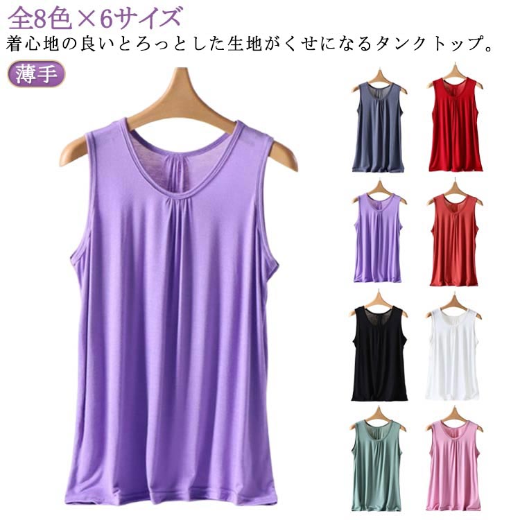 タンクトップ 綿混 細見え カットソー 締め付けない レディース フィット トップス インナー インナータンク ストレッチ レイヤード 重ね着 無地 シンプル ノースリーブ スリム 伸びる