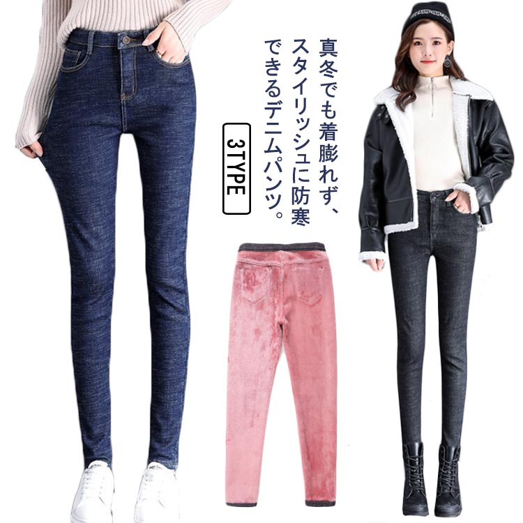 デニムパンツ スキニー 暖かい ジーパン あったか お洒落 ボトムス 美脚