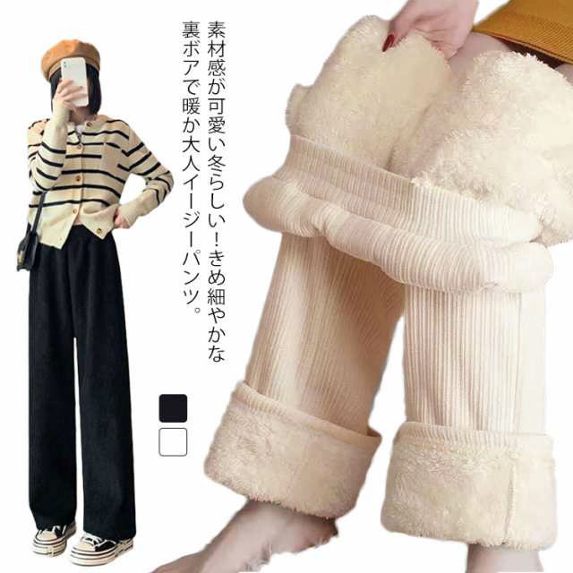 裏起毛 カジュアル パンツ 裏ボア 厚手 あったかパンツ 暖かい 防寒 冬 コーデユロイ ストレートパンツ 保温 レディース ワイドパンツ ボトムス ロングパンツ 長ズボン ウエス 体型カバー