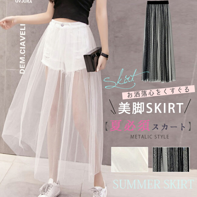 チュールスカート シースルー 重ね着コーデにピッタリ ロング ミモレ丈 マキシ丈 2タイプ 春夏 レディース フレアスカート ウエストゴム ハイウエスト Aライン 透け感 無地 黒 ふんわり おし 白