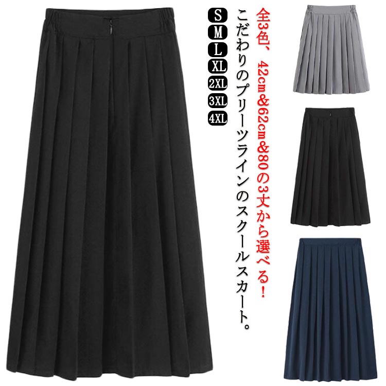 通学 選べる3丈 プリーツスカート 中学生 スクールスカート スカート コスチューム ロング丈 ミモレ丈 学生服 女子 高校生 仮装 膝丈 黒 灰 ブラック ネイビー 紺