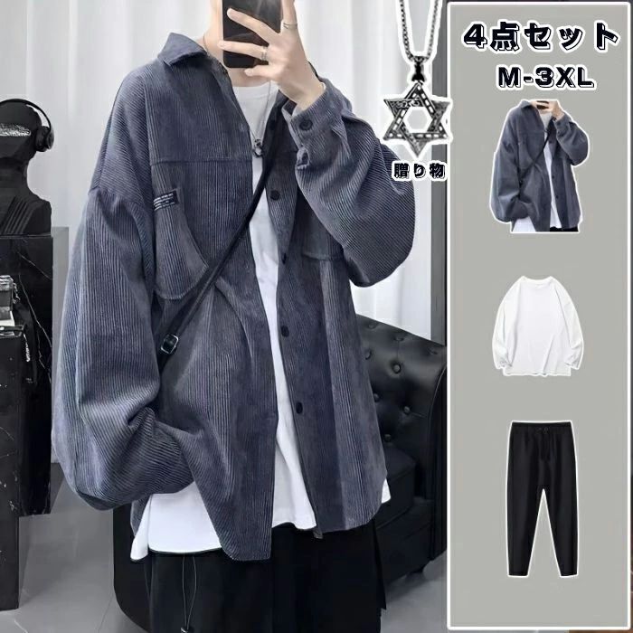セットアップ ジャケット パンツ シャツ Tシャツ 長袖 無地 半袖 ストレッチ 防寒 秋冬 韓版 かっこいい 上下4点セット 港風 春と秋 ゆったり 百掛け 上下セット ネックレス ト コーデュロイ
