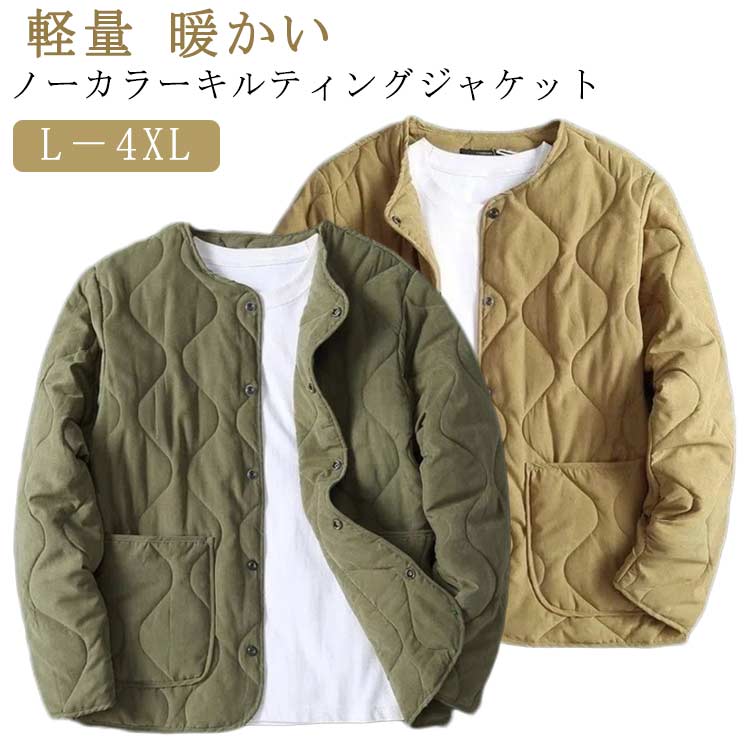 ノーカラー キルティングジャケット アウター ジャケット 長袖 メンズ 中綿ジャケット ジャンパー ショート丈 キルティングライナー 体型カバー キルティング ブルゾン ライナー ノーカラージャケット