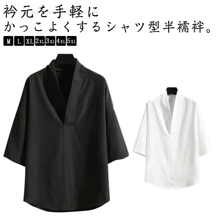 半襦袢 メンズ 男性 シャツ 黒 白 Vネック 洗える 半袖 五分袖 襦袢 和装 肌着 着物 下着 作務衣 浴衣 インナー 襟付き Tシャツ 夏用 冬用 肌襦袢 衿付き 和装下着 紳士 合衿
