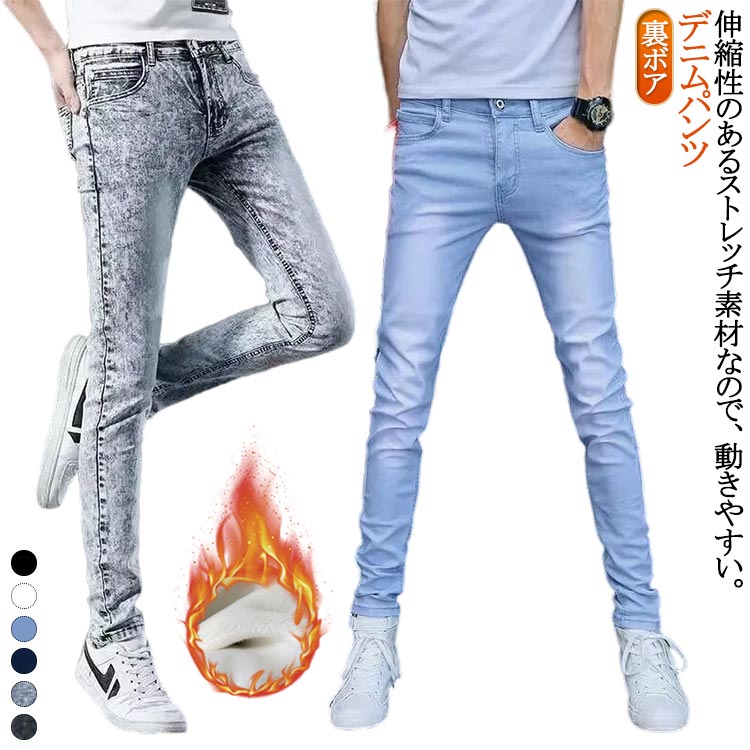 メンズ 裏起毛 デニムパンツ スキニー ストレッチ 裏フリース 裏ボア スキニーパンツ 暖パン あったかパンツ 伸縮 ロングパンツ 細身 男性 韓国 ファッション 冬服 裏起毛なし 春 秋 冬 大 夏