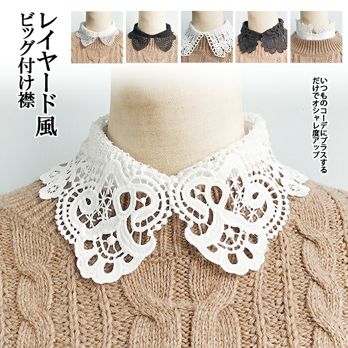 9タイプから選べるレース付け襟。レイヤードスタイルで重ね着風コーディネートを簡単にアレンジ。