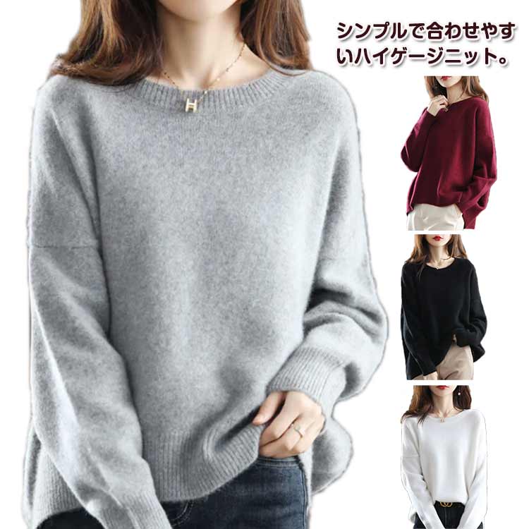 ニット トップス プルオーバー 厚手 丸首 ハイケージニット ニットセーター チクチクしない 大人 きれいめ レディースファッション
