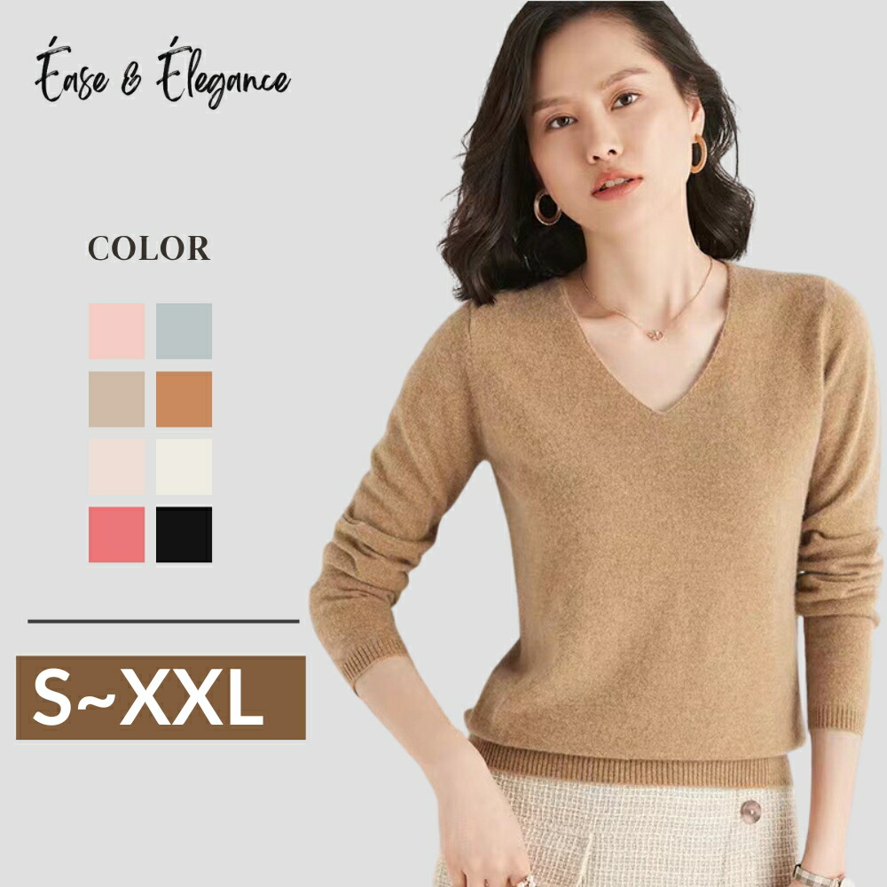 ニット レディース ウールセーター レディースニット 100% カシミヤ カラーニット ゆるニット カシミヤセーター Vネックセーター 無地 シンプル 体型カバー ゆったり 秋服 長袖ニット