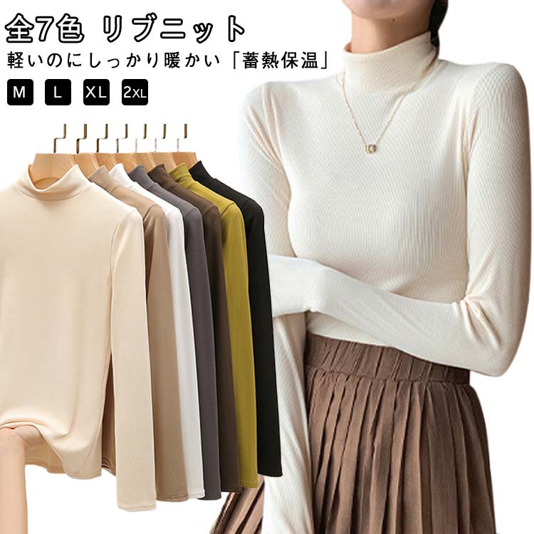 ニットトップス リブニット レディース ハイネック 長袖 ニット セーター インナー あったか 防寒 無地 重ね着風 着回し 伸縮性 ストレッチ 春 秋 冬 フィット