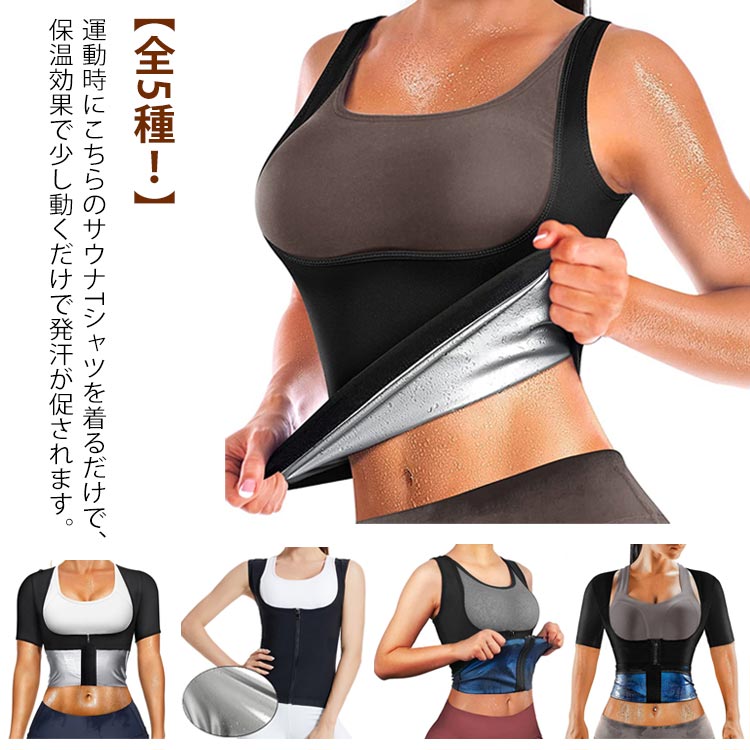 全5種 コンプレッションインナー レディース 発汗 効果 サウナ Tシャツ 長袖 半袖 ベスト ジップ付き ジップなし サウナシャツ インナー カロリー消費アップ 筋トレ アンダーウェア サウナスーツ