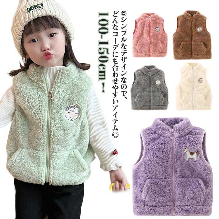 ボアベスト キッズ ベスト 女の子 ボアアウター アウター フリース モコモコ ボア もこもこ 防寒ベスト 冬キッズ 100 110 120 130 140 150