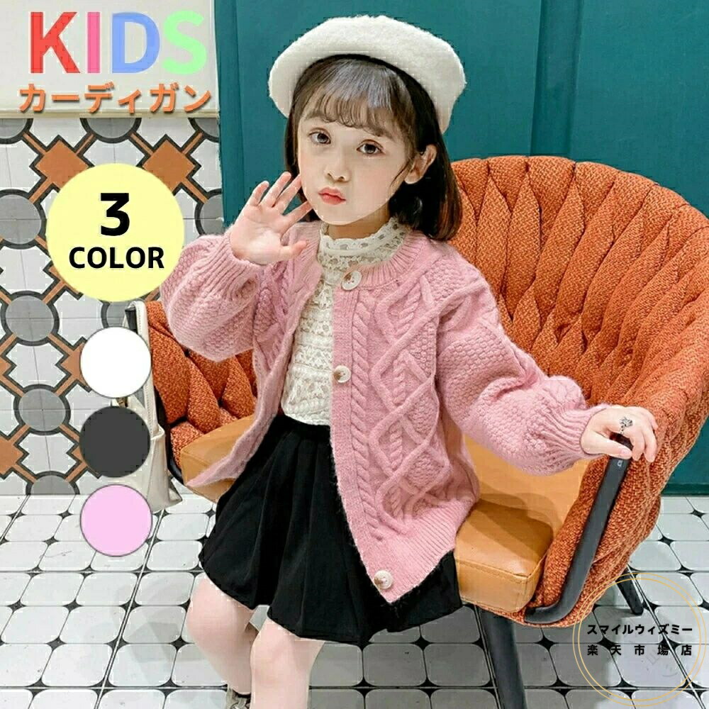 子供 ニットカーディガン 厚手 秋冬 女の子 アウター あったか 可愛い 暖かい 防寒 子ども ジュニア 幼児 女児 小学生 白 ピンク グレー 90 100 110 130 140 150 120