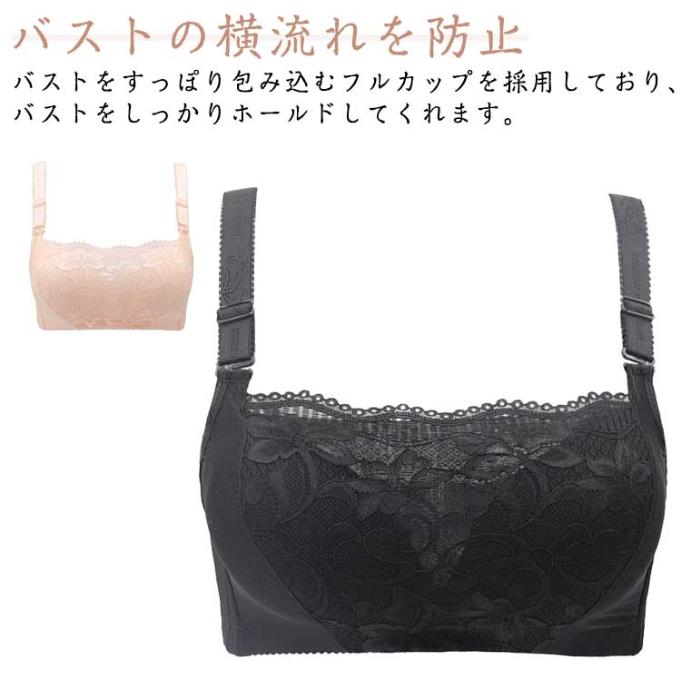 胸を小さく見せるブラ 設計 ノーワイヤー 胸が小さく見えるブラ 補正下着 脇肉 レース ブラ単品 着痩せブラ スッキリ 背中 フルカップ ブラジャー 大きな胸を小さく見せるブラジャー 補正 レディース
