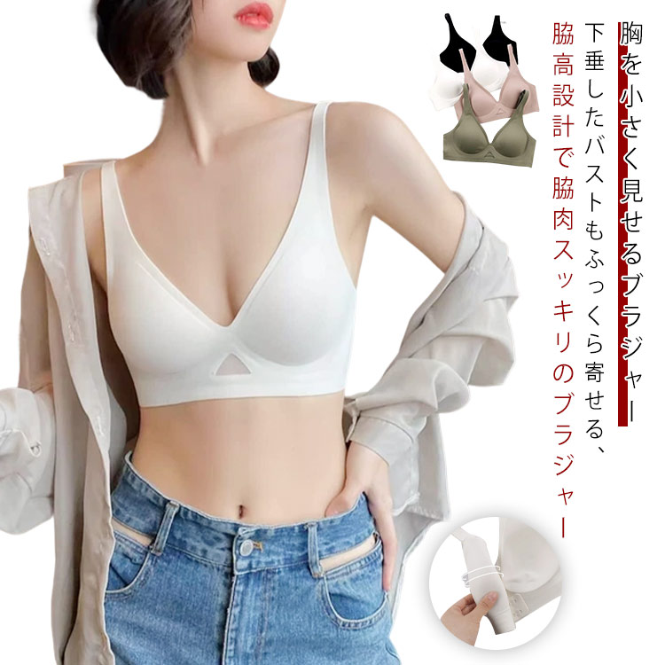薄め 胸が小さく見えるブラ 大きいサイズ 胸を小さく見せるブラジャー レディース 痛くない 薄手 着痩せブラ ノンワイヤー 脇高ブラ 小胸 育乳ブラジャー 軽量 補正下着 補正 ブラジャー