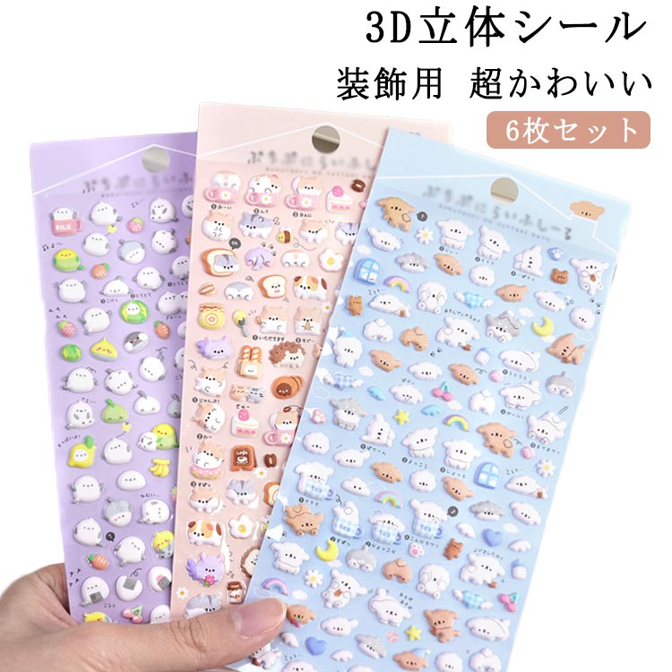 6枚セット ぷっくりシール ぷちぷにらいふしーる シール交換 3dシール 立体シール ぷちぷにらいふシール ご褒美シール かわいい 6枚入り 動物 女の子 男の子 シール 手帳用 キラ ぷくぷくシール
